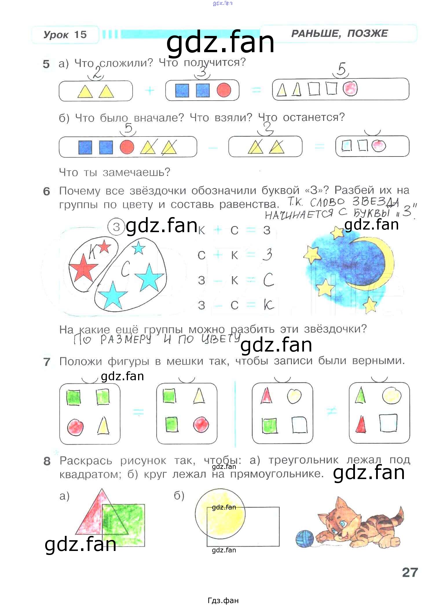 Проверка домашнего задания всегда занимает большое количество времени. На помощь приходит ГДЗ фан по Математике первого класса. Здесь собраны популярные ответы на 27 (№ 5, 6, 7, 8) Математика 1 класс рабочая тетрадь Петерсон Л.Г.