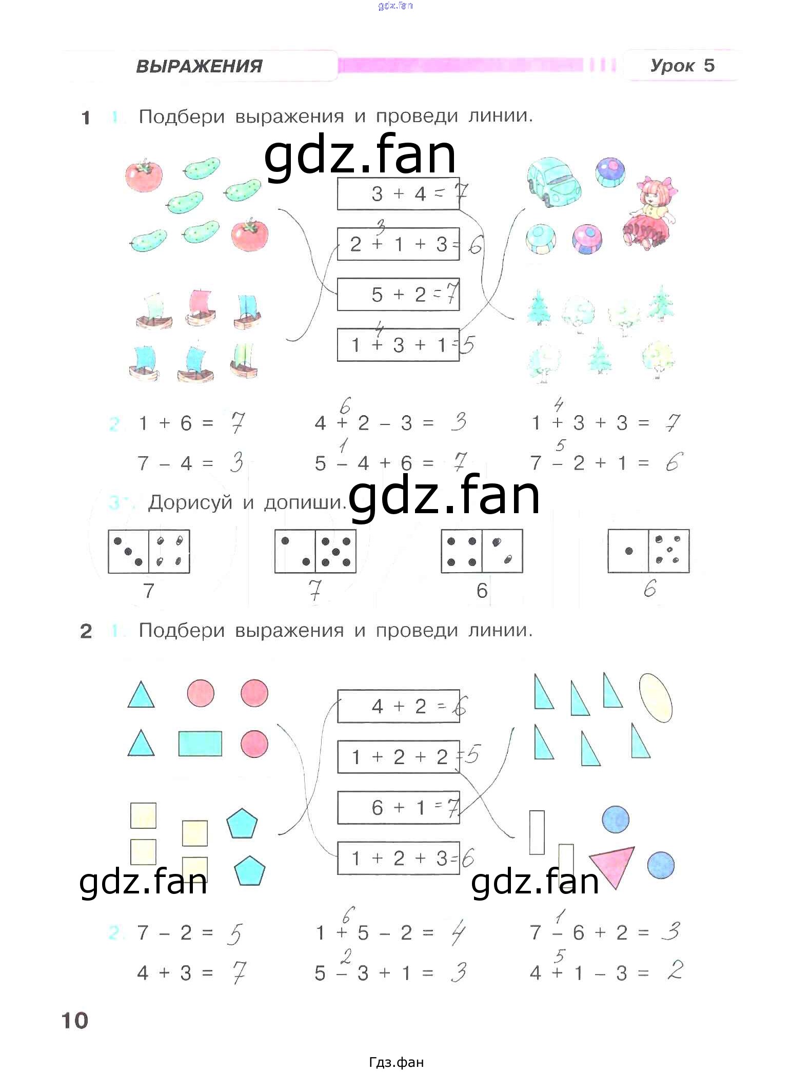 Проверка домашнего задания всегда занимает большое количество времени. На помощь приходит ГДЗ фан по Математике первого класса. Здесь собраны популярные ответы на 10 (Урок 5 № 1, 2) Математика 1 класс рабочая тетрадь Петерсон Л.Г.