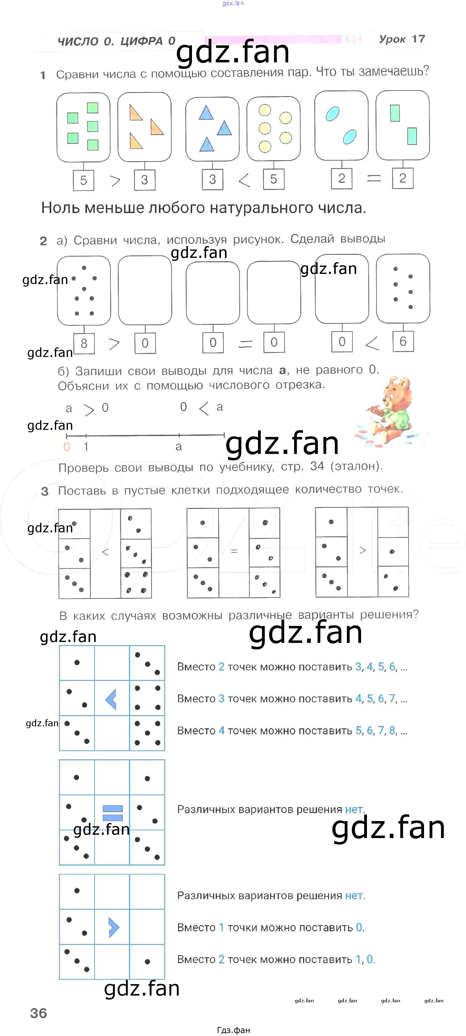 Проверка домашнего задания всегда занимает большое количество времени. На помощь приходит ГДЗ фан по Математике первого класса. Здесь собраны популярные ответы на 36 (Урок 17 № 1, 2, 3) Математика 1 класс рабочая тетрадь Петерсон Л.Г.