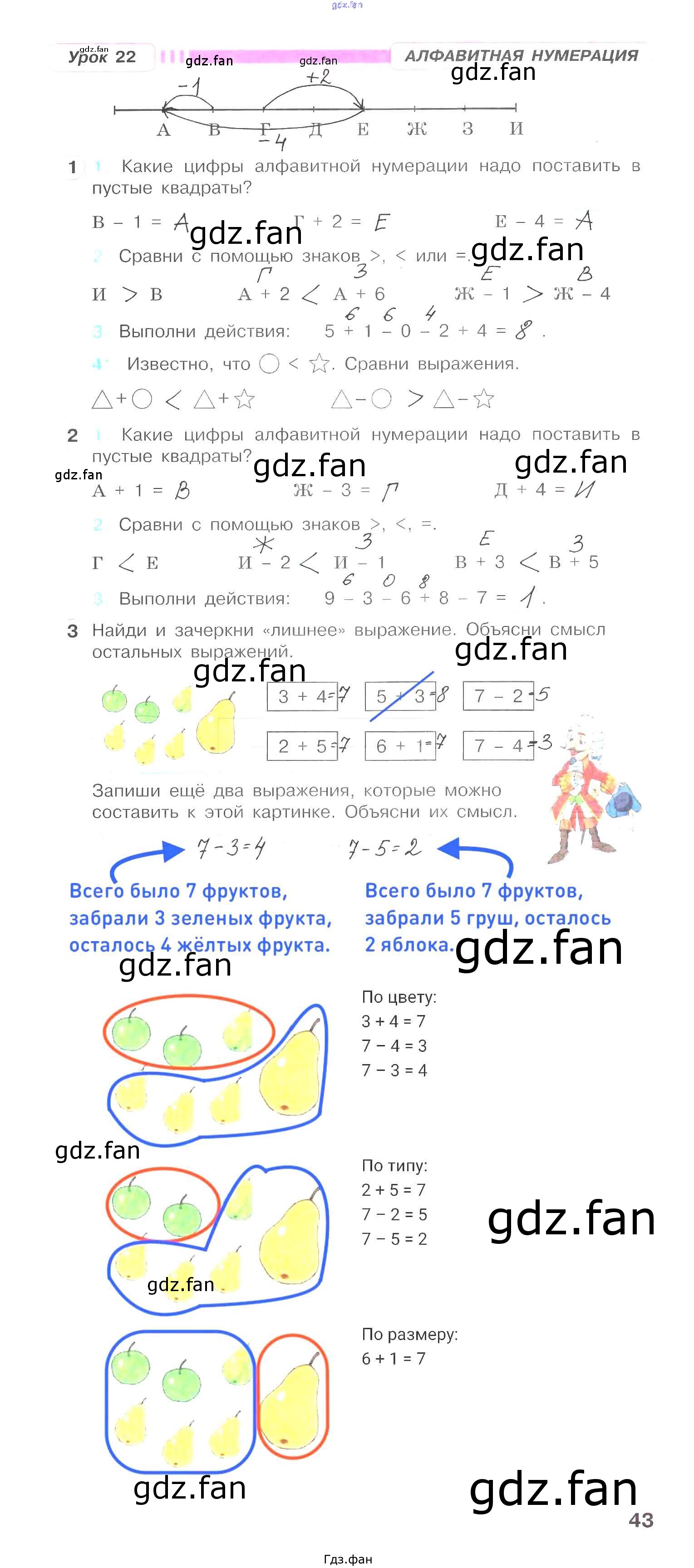 Проверка домашнего задания всегда занимает большое количество времени. На помощь приходит ГДЗ фан по Математике первого класса. Здесь собраны популярные ответы на 43 (Алфавитная нумерация. Урок 22 № 1, 2, 3) Математика 1 класс рабочая тетрадь Петерсон Л.Г.