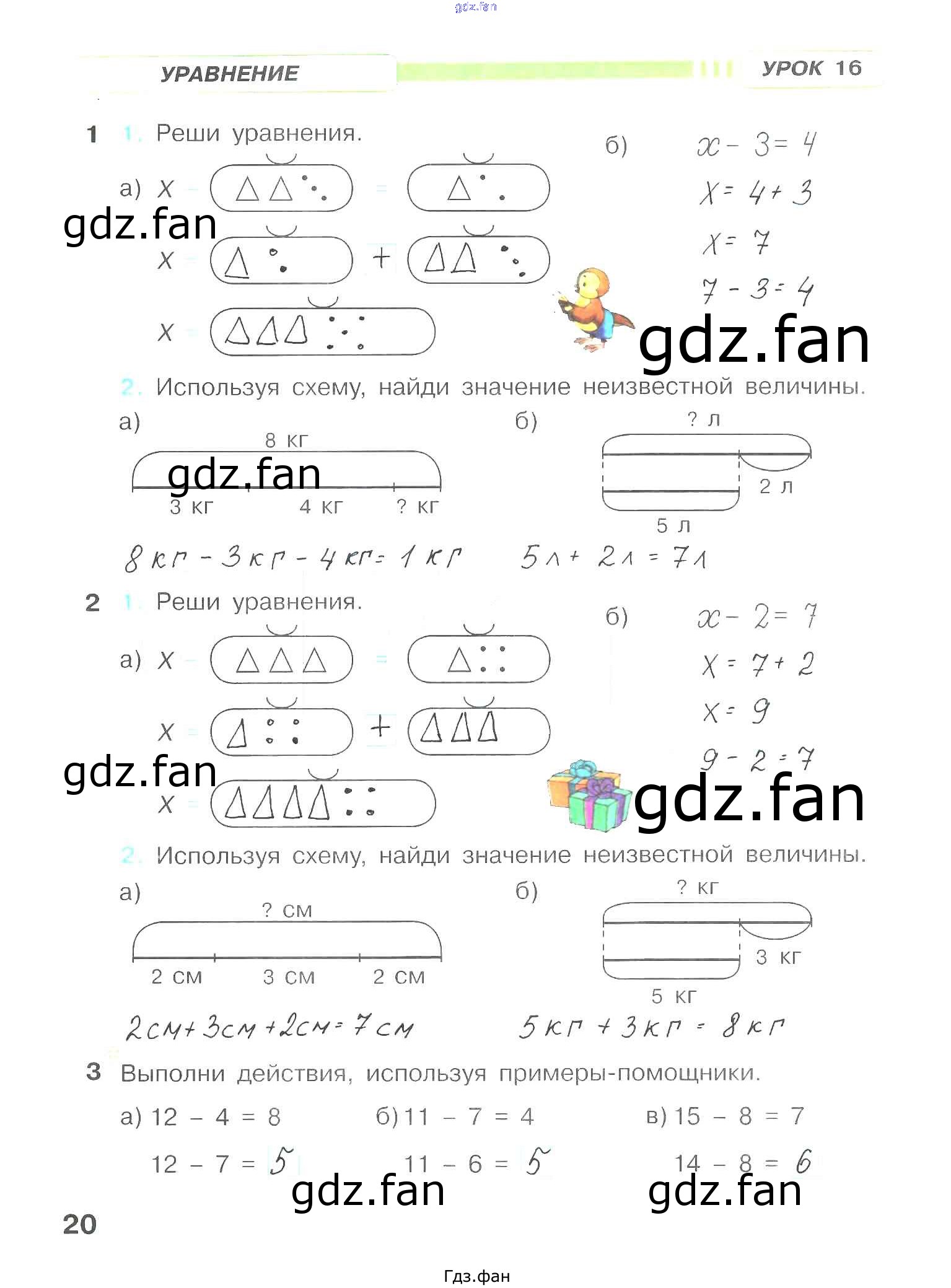 Проверка домашнего задания всегда занимает большое количество времени. На помощь приходит ГДЗ фан по Математике первого класса. Здесь собраны популярные ответы на 20 (Урок 16 № 1, 2, 3) Математика 1 класс рабочая тетрадь Петерсон Л.Г.