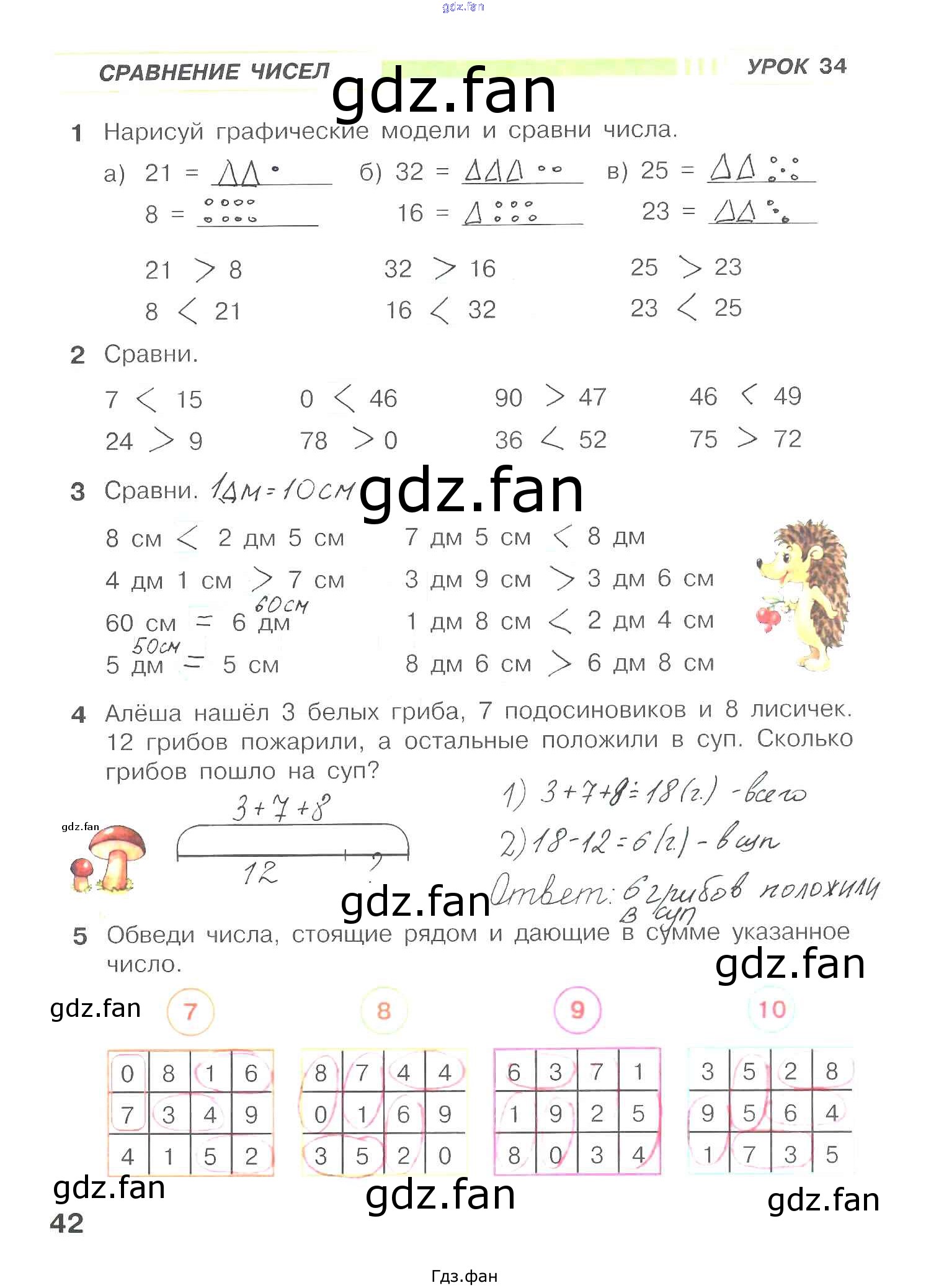 Проверка домашнего задания всегда занимает большое количество времени. На помощь приходит ГДЗ фан по Математике первого класса. Здесь собраны популярные ответы на 42 (Сравнение чисел. Урок 34 № 1, 2, 3, 4, 5) Математика 1 класс рабочая тетрадь Петерсон Л.Г.