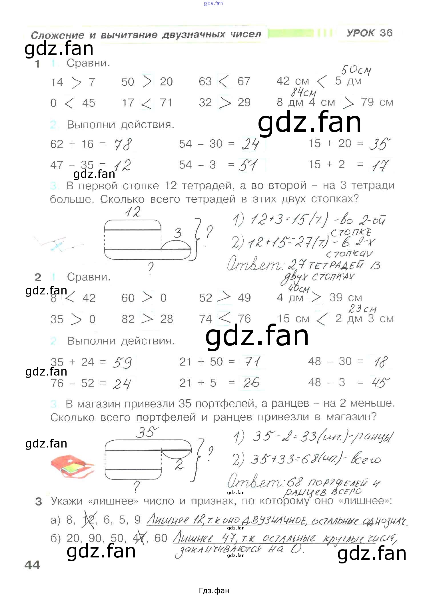 Проверка домашнего задания всегда занимает большое количество времени. На помощь приходит ГДЗ фан по Математике первого класса. Здесь собраны популярные ответы на 44 (Урок 36 № 1, 2, 3) Математика 1 класс рабочая тетрадь Петерсон Л.Г.