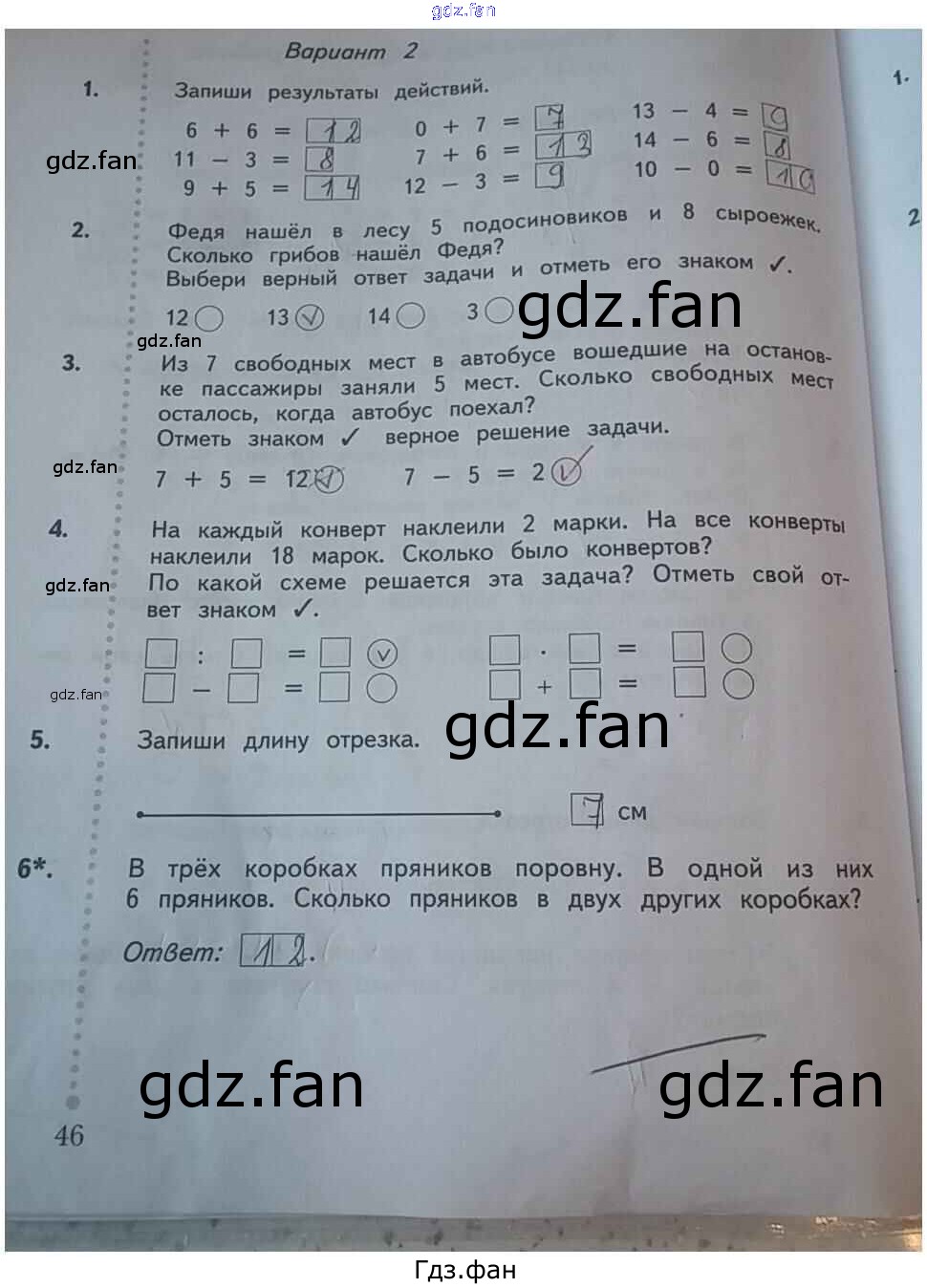 Проверка домашнего задания всегда занимает большое количество времени. На помощь приходит ГДЗ фан по Математике первого класса. Здесь собраны популярные ответы на 46 (Вариант 2 № 1, 2, 3, 4, 5, 6) Математика 1 класс тетрадь для проверочных работ Рудницкая В.Н.