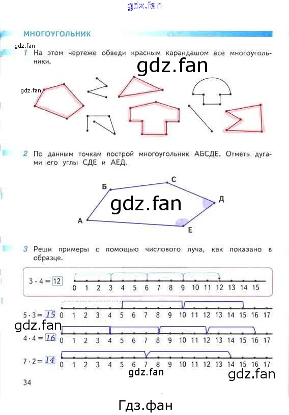 Проверка домашнего задания всегда занимает большое количество времени. На помощь приходит ГДЗ фан по Математике второго класса. Здесь собраны популярные ответы на 34 (Многоугольник № 1, 2, 3) Математика 2 класс рабочая тетрадь Дорофеев Г.В.