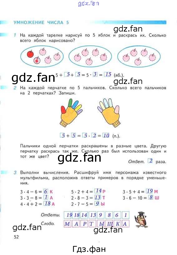 Проверка домашнего задания всегда занимает большое количество времени. На помощь приходит ГДЗ фан по Математике второго класса. Здесь собраны популярные ответы на 52 (Умножение числа 5 № 1, 2, 3) Математика 2 класс рабочая тетрадь Дорофеев Г.В.