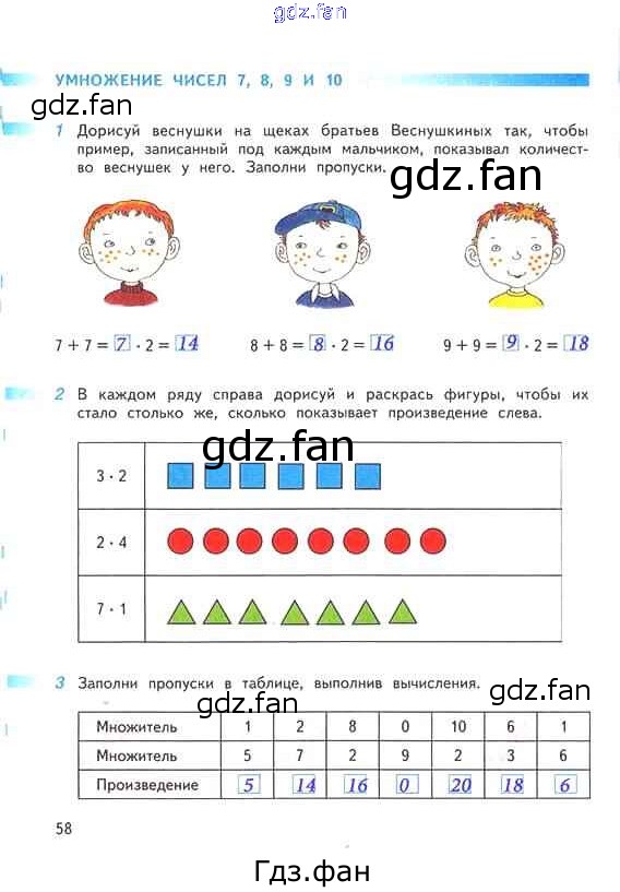 Проверка домашнего задания всегда занимает большое количество времени. На помощь приходит ГДЗ фан по Математике второго класса. Здесь собраны популярные ответы на 58 (Умножение чисел 7, 8, 9 и 10 № 1, 2, 3) Математика 2 класс рабочая тетрадь Дорофеев Г.В.