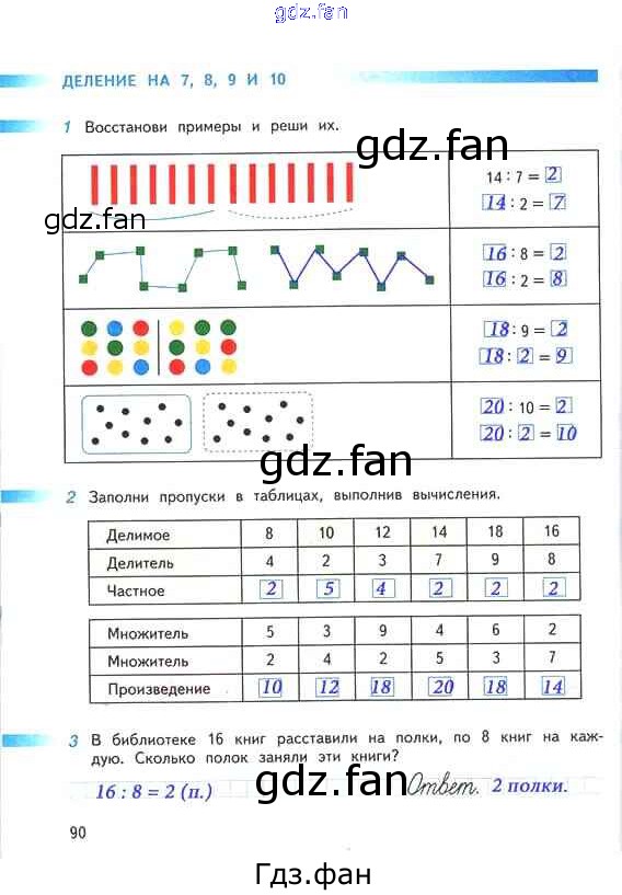 Проверка домашнего задания всегда занимает большое количество времени. На помощь приходит ГДЗ фан по Математике второго класса. Здесь собраны популярные ответы на 90 (Деление на 7, 8, 9 и 10 № 1, 2, 3) Математика 2 класс рабочая тетрадь Дорофеев Г.В.