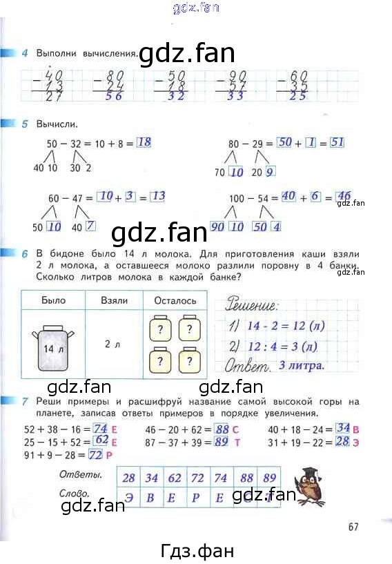 Проверка домашнего задания всегда занимает большое количество времени. На помощь приходит ГДЗ фан по Математике второго класса. Здесь собраны популярные ответы на 67 (№ 4, 5, 6, 7) Математика 2 класс рабочая тетрадь Дорофеев Г.В.
