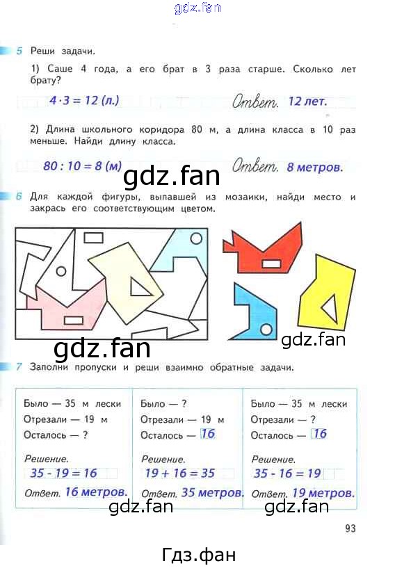 Проверка домашнего задания всегда занимает большое количество времени. На помощь приходит ГДЗ фан по Математике второго класса. Здесь собраны популярные ответы на 93 (№ 5, 6, 7) Математика 2 класс рабочая тетрадь Дорофеев Г.В.