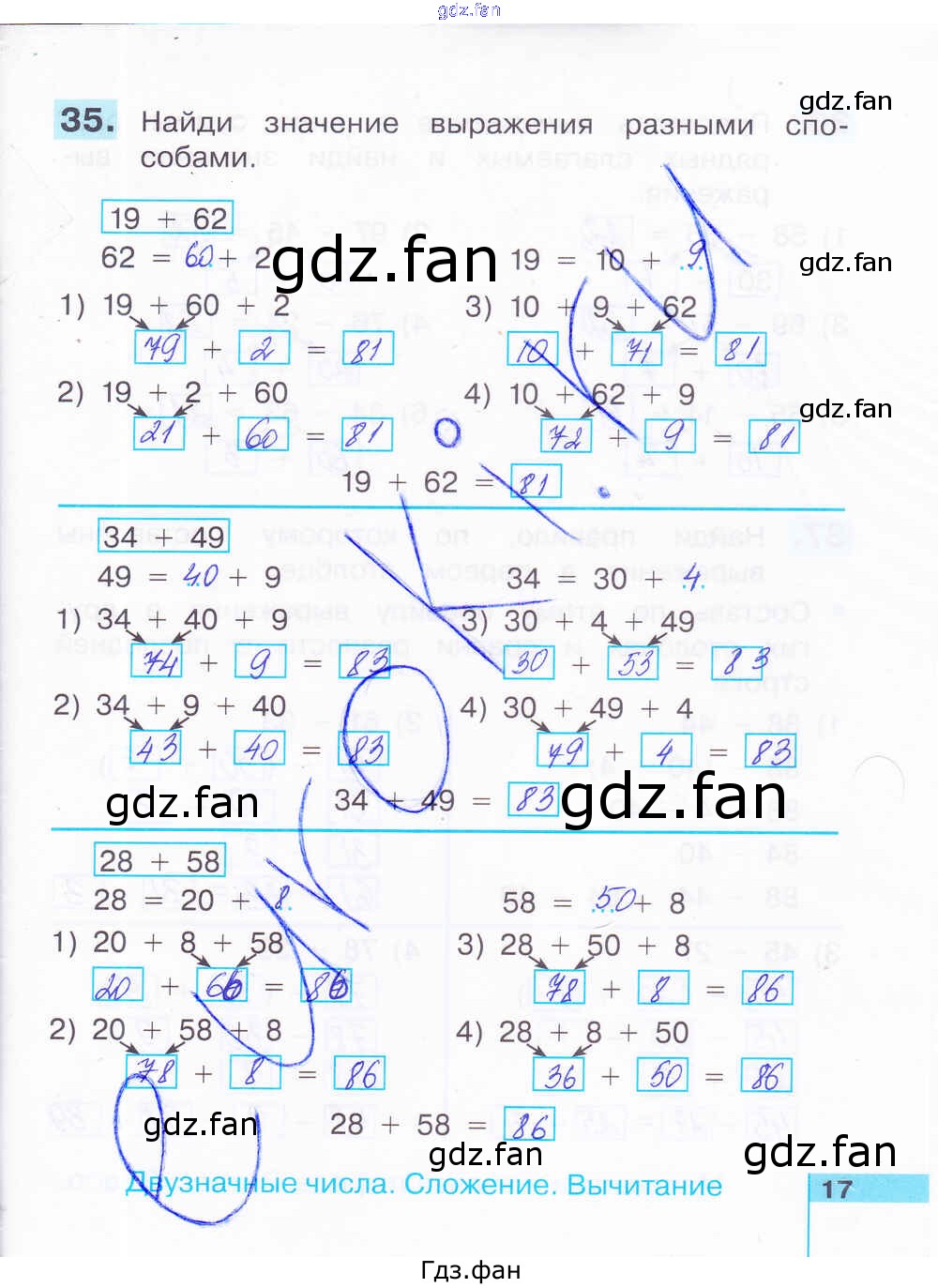 Проверка домашнего задания всегда занимает большое количество времени. На помощь приходит ГДЗ фан по Математике второго класса. Здесь собраны популярные ответы на 17 (№ 35) Математика 2 класс рабочая тетрадь Истомина Н.Б.