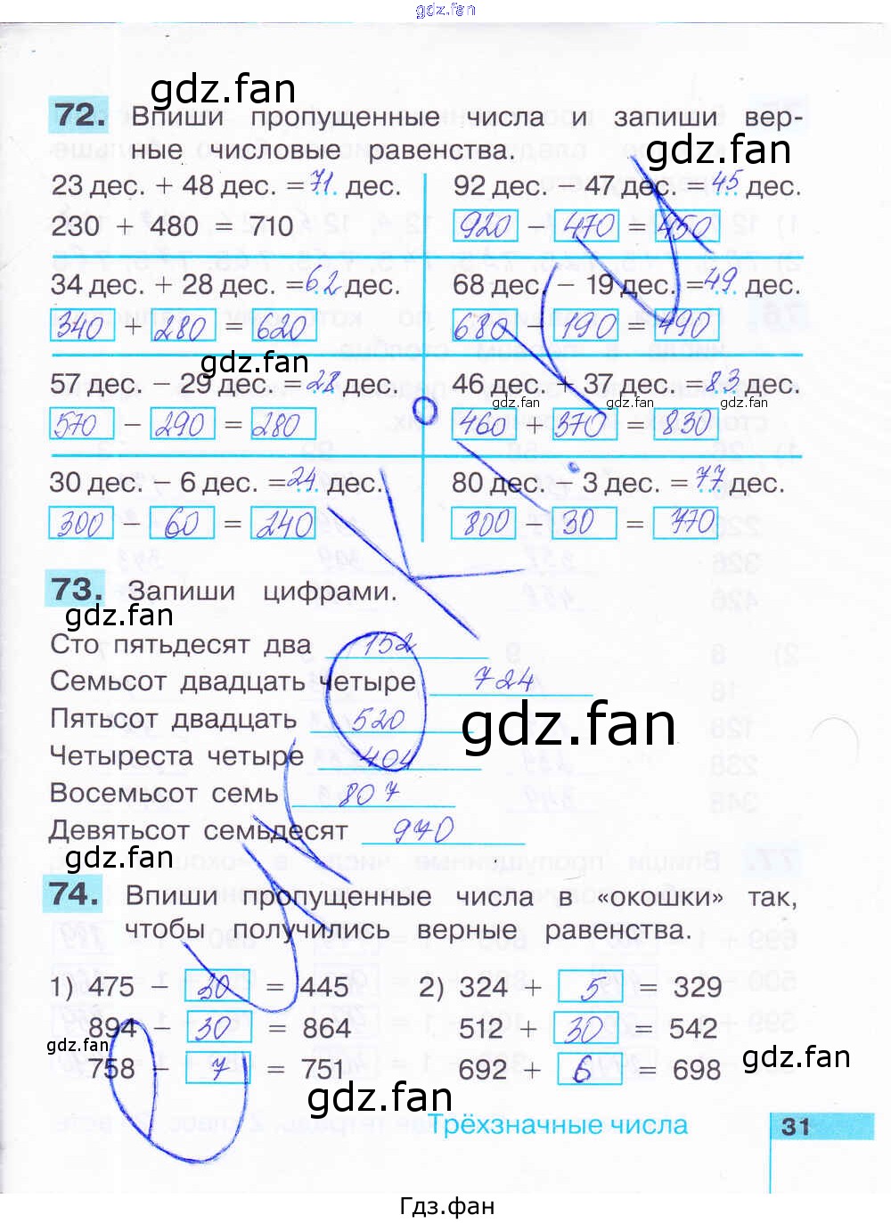 Проверка домашнего задания всегда занимает большое количество времени. На помощь приходит ГДЗ фан по Математике второго класса. Здесь собраны популярные ответы на 31 (№ 72, 73, 74) Математика 2 класс рабочая тетрадь Истомина Н.Б.
