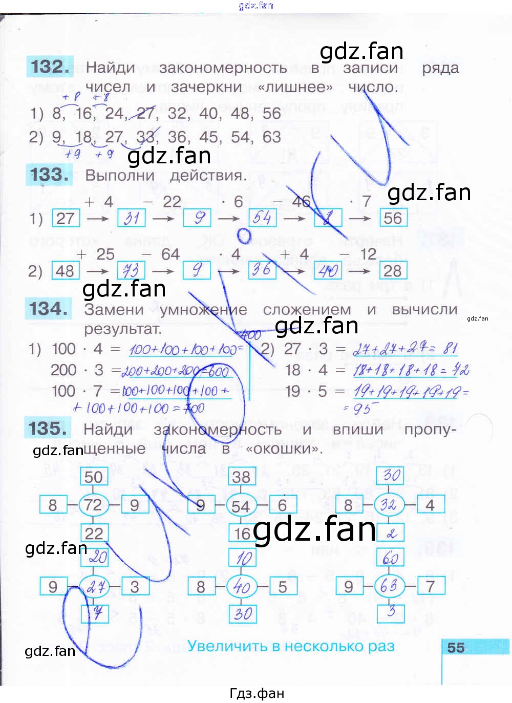 Проверка домашнего задания всегда занимает большое количество времени. На помощь приходит ГДЗ фан по Математике второго класса. Здесь собраны популярные ответы на 55 (№ 132, 133, 134, 135) Математика 2 класс рабочая тетрадь Истомина Н.Б.