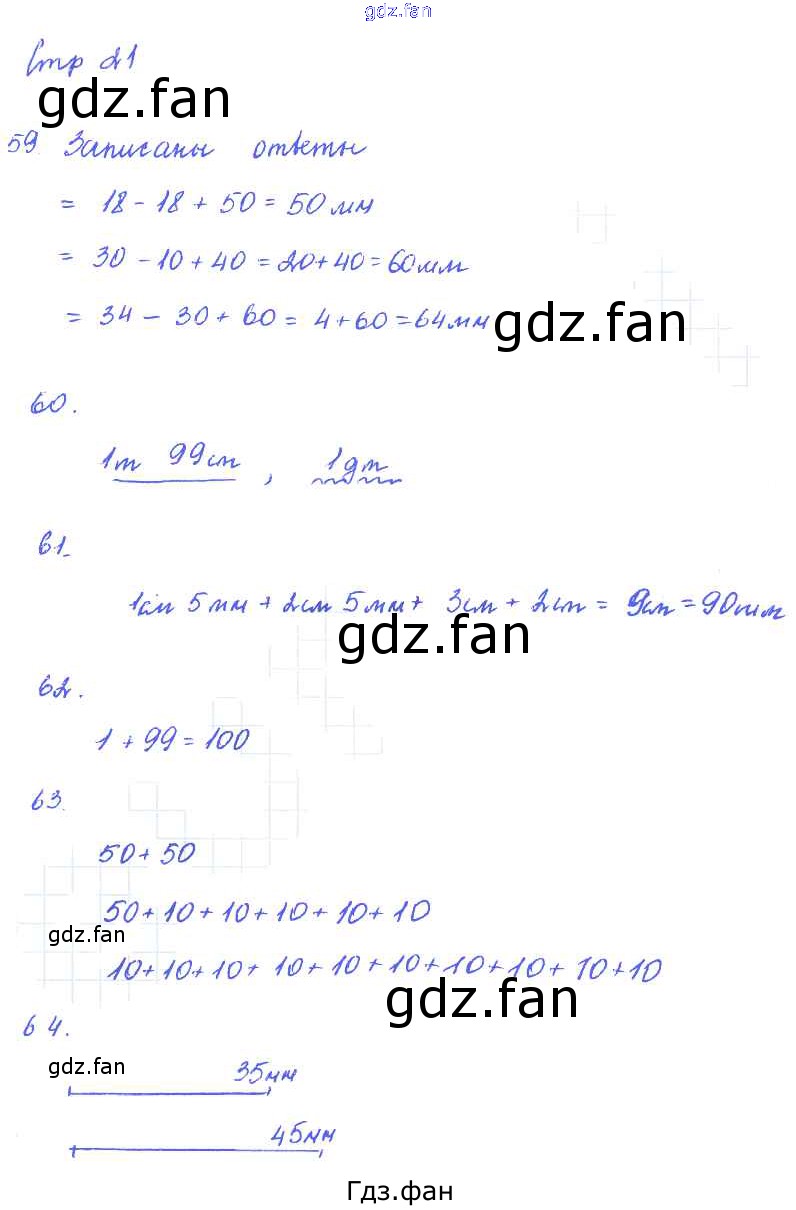 Проверка домашнего задания всегда занимает большое количество времени. На помощь приходит ГДЗ фан по Математике второго класса. Здесь собраны популярные ответы на 21 (задание 59, 60, 61, 62, 63, 64) Математика 2 класс рабочая тетрадь Кремнева С.Ю.