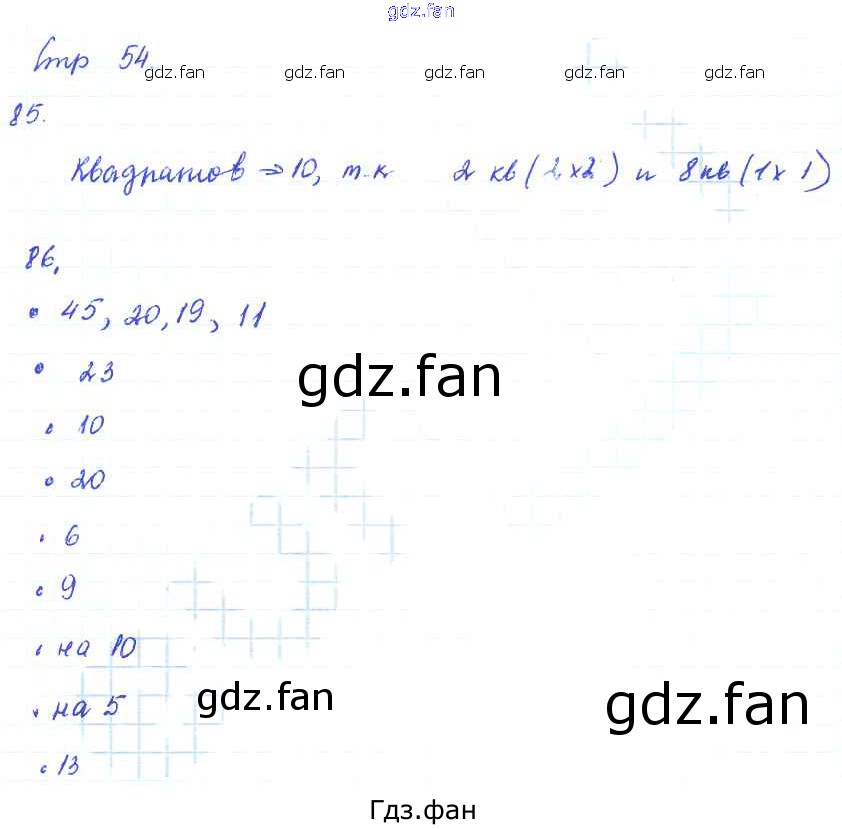 Проверка домашнего задания всегда занимает большое количество времени. На помощь приходит ГДЗ фан по Математике второго класса. Здесь собраны популярные ответы на 54 (задание 85, 86) Математика 2 класс рабочая тетрадь Кремнева С.Ю.