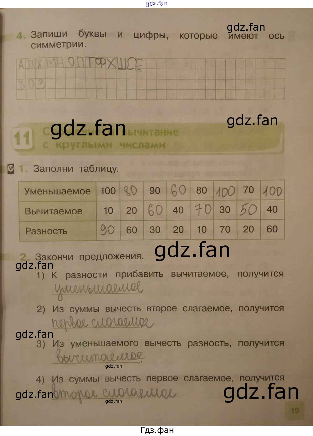 Проверка домашнего задания всегда занимает большое количество времени. На помощь приходит ГДЗ фан по Математике второго класса. Здесь собраны популярные ответы на 19 (№ 4. Сложение и вычитание с круглыми числами № 1, 2) Математика 2 класс рабочая тетрадь Муравина О.В.