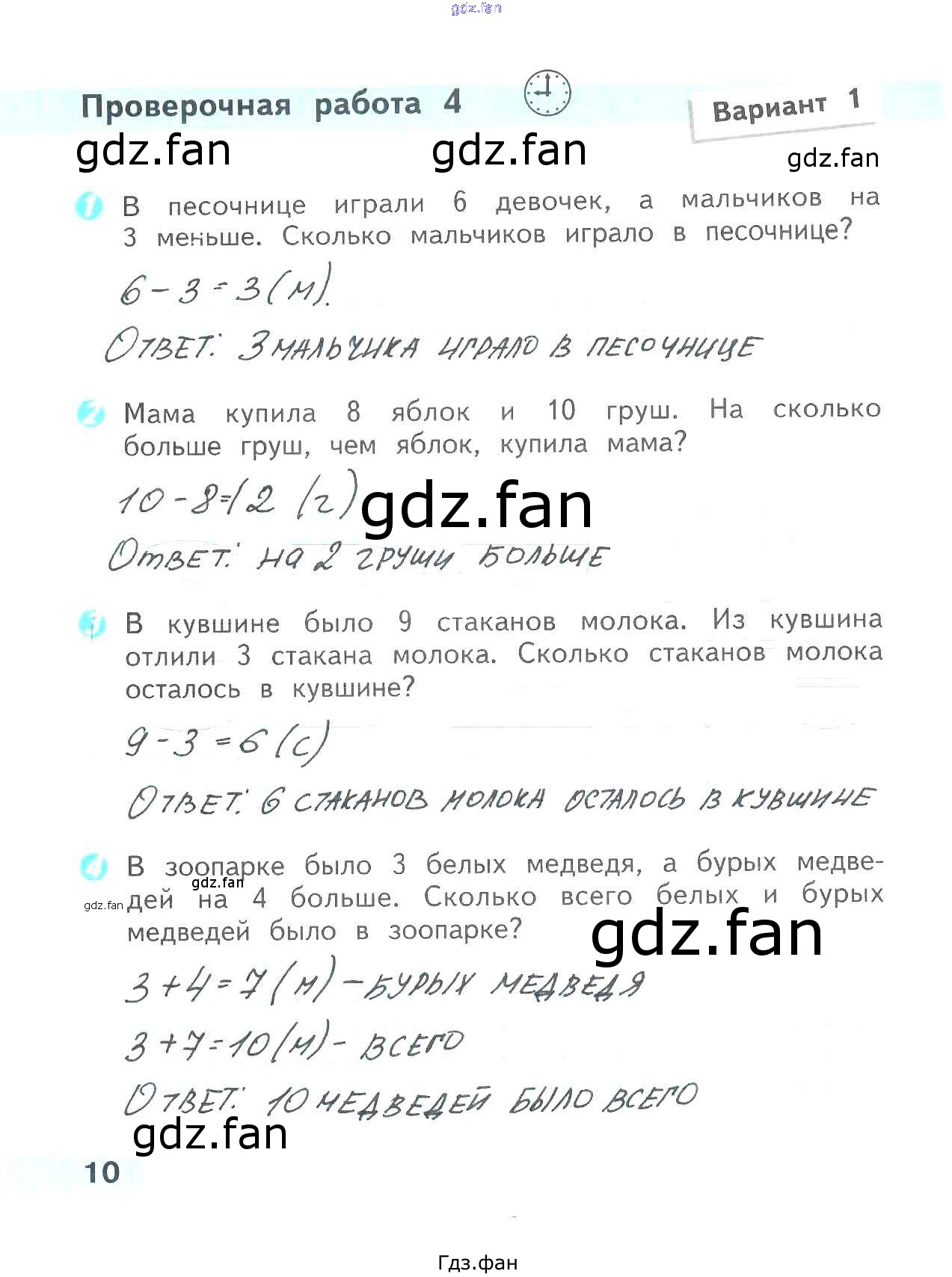 Проверка домашнего задания всегда занимает большое количество времени. На помощь приходит ГДЗ фан по Математике второго класса. Здесь собраны популярные ответы на 10 (Проверочная работа 4. Вариант 1 № 1, 2, 3, 4) Математика 2 класс проверочные работы Волкова С.И.