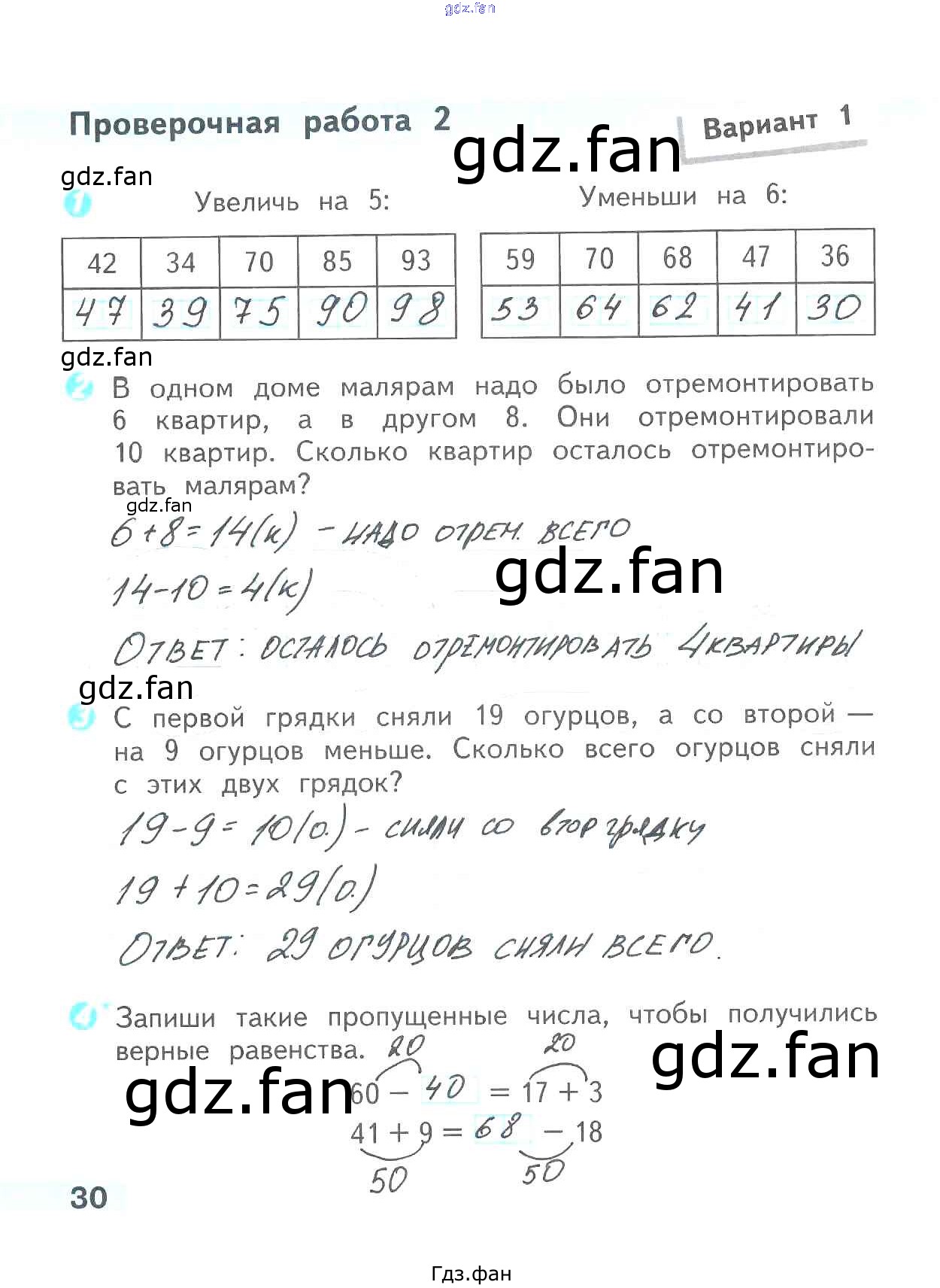 Проверка домашнего задания всегда занимает большое количество времени. На помощь приходит ГДЗ фан по Математике второго класса. Здесь собраны популярные ответы на 30 (Проверочная работа 2. Вариант 1 № 1, 2, 3, 4) Математика 2 класс проверочные работы Волкова С.И.