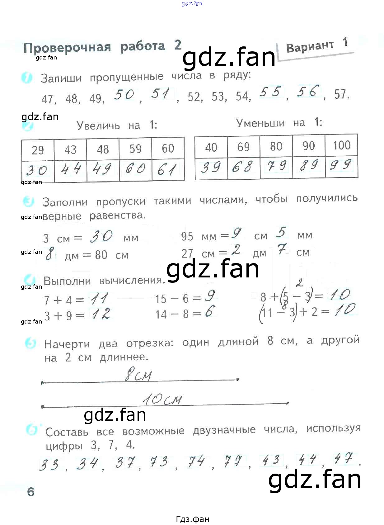 Проверка домашнего задания всегда занимает большое количество времени. На помощь приходит ГДЗ фан по Математике второго класса. Здесь собраны популярные ответы на 6 (Проверочная работа 2. Вариант 1 № 1, 2, 3, 4, 5, 6) Математика 2 класс проверочные работы Волкова С.И.
