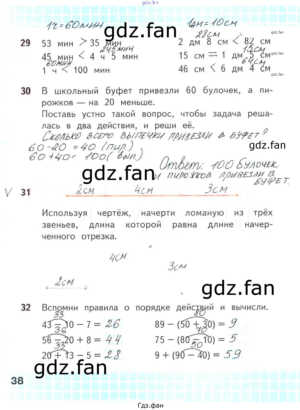 Проверка домашнего задания всегда занимает большое количество времени. На помощь приходит ГДЗ фан по Математике второго класса. Здесь собраны популярные ответы на 38 (№ 29, 30, 31, 32) Математика 2 класс рабочая тетрадь Волкова С.И.