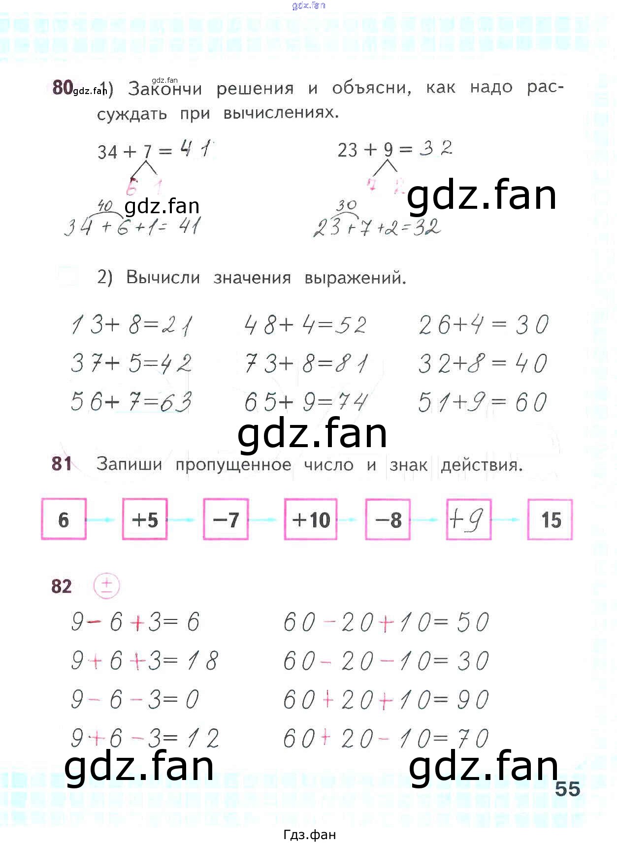 Проверка домашнего задания всегда занимает большое количество времени. На помощь приходит ГДЗ фан по Математике второго класса. Здесь собраны популярные ответы на 55 (№ 80, 81, 82) Математика 2 класс рабочая тетрадь Волкова С.И.