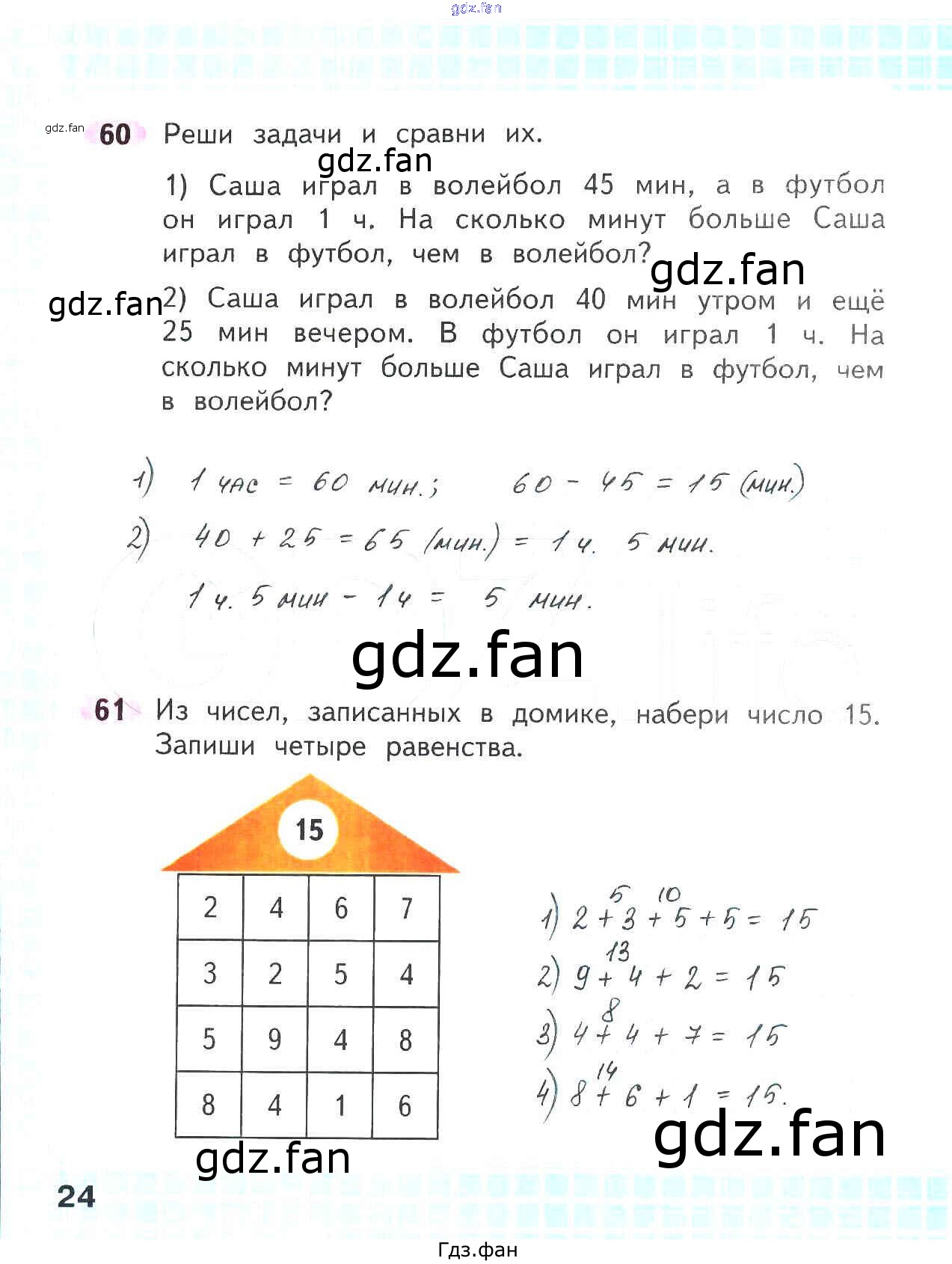Проверка домашнего задания всегда занимает большое количество времени. На помощь приходит ГДЗ фан по Математике второго класса. Здесь собраны популярные ответы на 24 (№ 60, 61) Математика 2 класс рабочая тетрадь Волкова С.И.