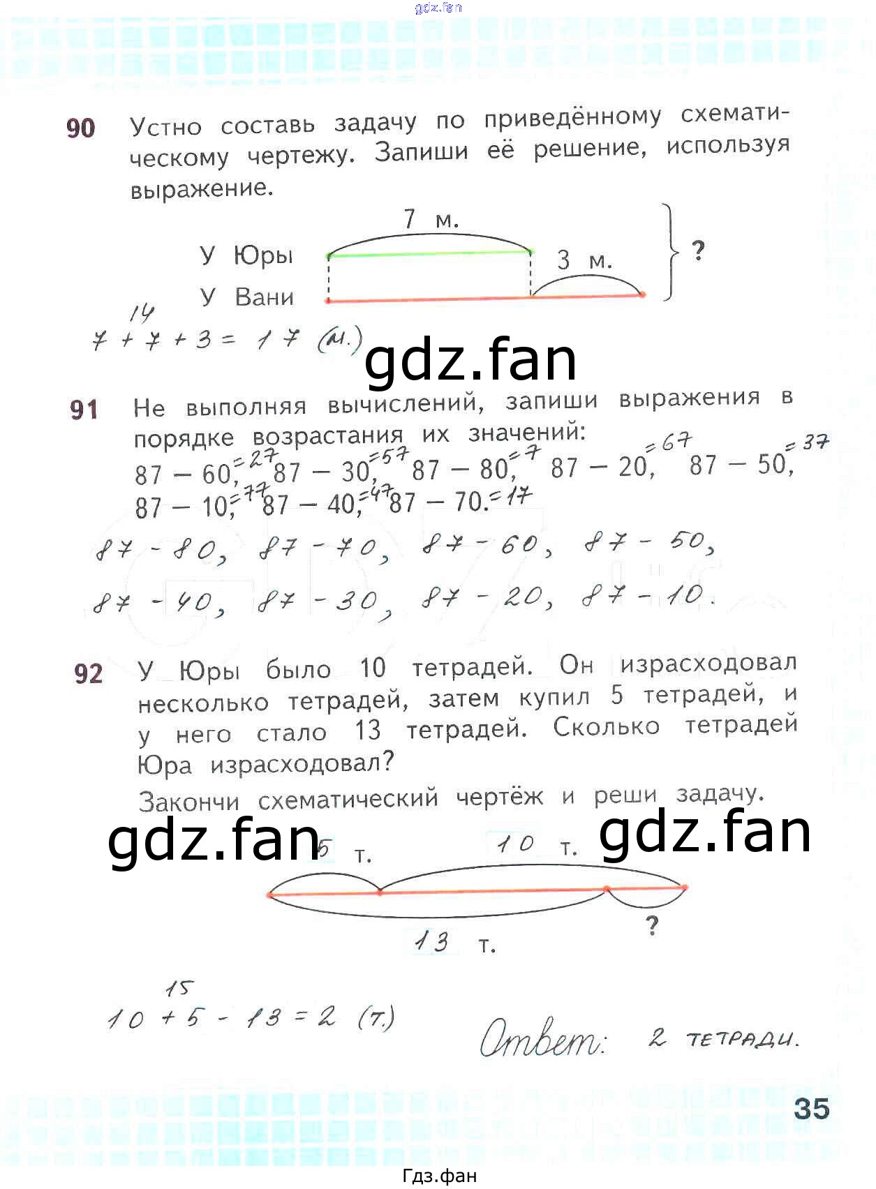 Проверка домашнего задания всегда занимает большое количество времени. На помощь приходит ГДЗ фан по Математике второго класса. Здесь собраны популярные ответы на 35 (№ 90, 91, 92) Математика 2 класс рабочая тетрадь Волкова С.И.