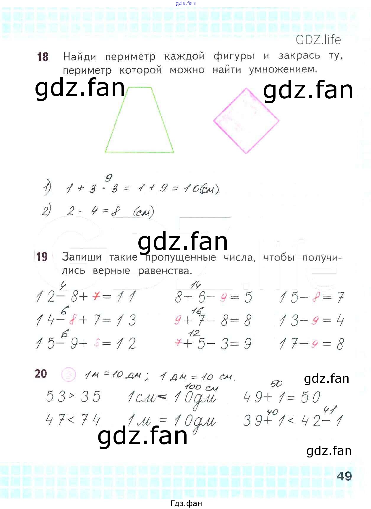 Проверка домашнего задания всегда занимает большое количество времени. На помощь приходит ГДЗ фан по Математике второго класса. Здесь собраны популярные ответы на 49 (№ 18, 19, 20) Математика 2 класс рабочая тетрадь Волкова С.И.