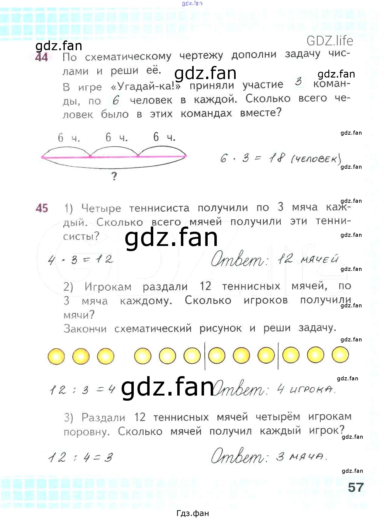 Проверка домашнего задания всегда занимает большое количество времени. На помощь приходит ГДЗ фан по Математике второго класса. Здесь собраны популярные ответы на 57 (№ 44, 45) Математика 2 класс рабочая тетрадь Волкова С.И.