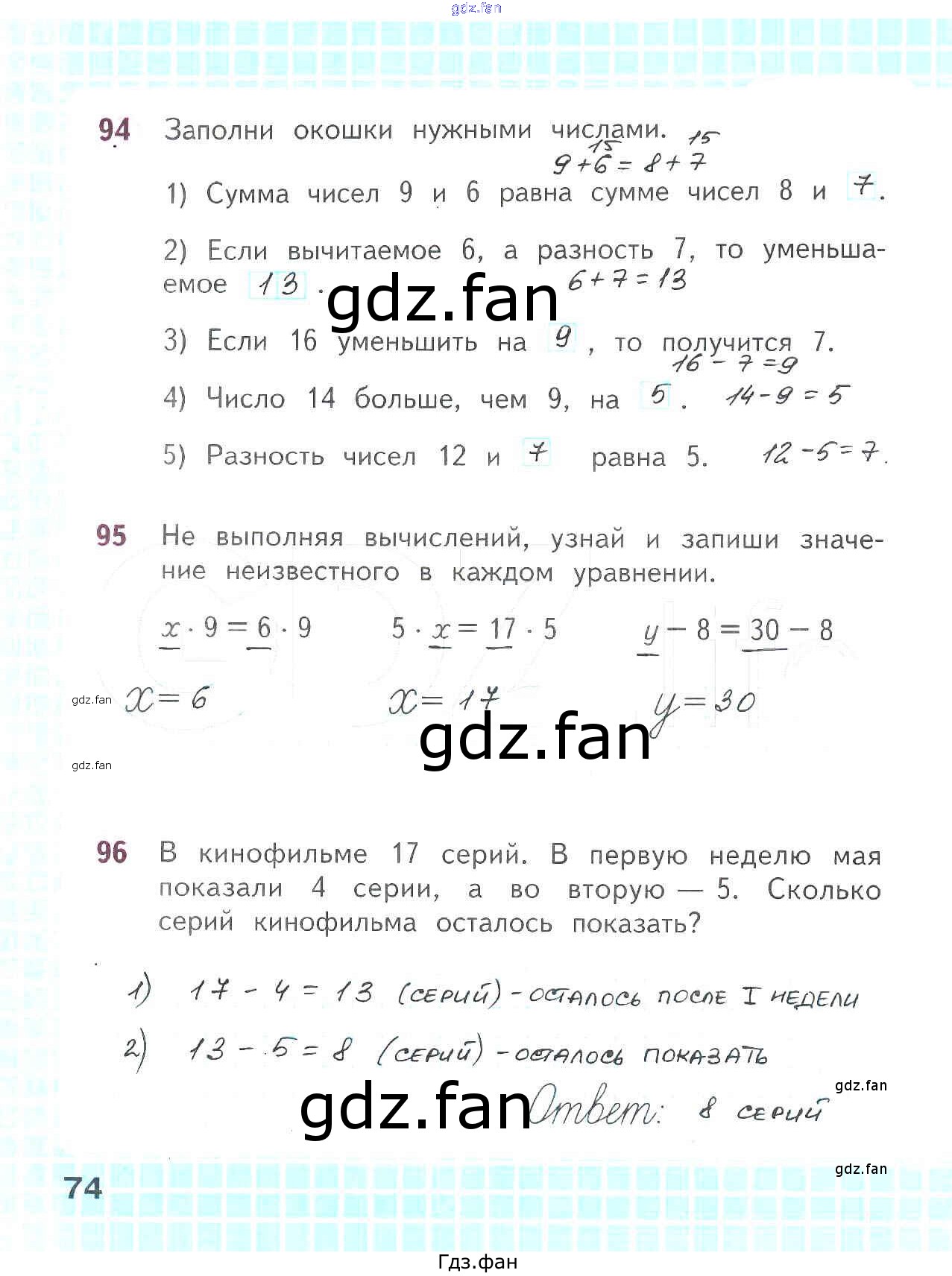 Проверка домашнего задания всегда занимает большое количество времени. На помощь приходит ГДЗ фан по Математике второго класса. Здесь собраны популярные ответы на 74 (№ 94, 95, 96) Математика 2 класс рабочая тетрадь Волкова С.И.