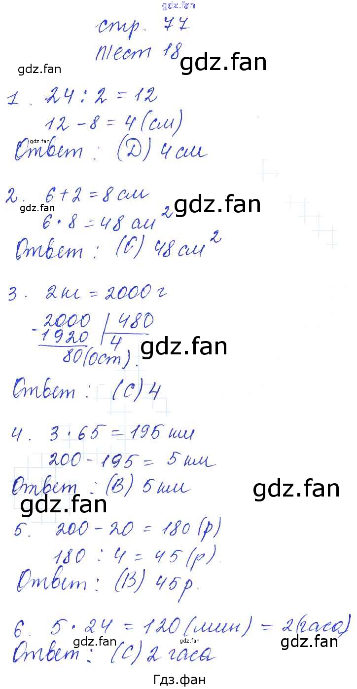 Проверка домашнего задания всегда занимает большое количество времени. На помощь приходит ГДЗ фан по Математике третьего класса. Здесь собраны популярные ответы на 77 (тест 18) Математика 3 класс рабочая тетрадь Башмаков М.И.