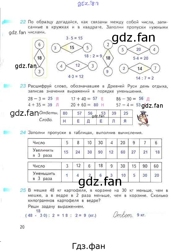 Проверка домашнего задания всегда занимает большое количество времени. На помощь приходит ГДЗ фан по Математике третьего класса. Здесь собраны популярные ответы на 20 (№ 22, 23, 24, 25) Математика 3 класс рабочая тетрадь Дорофеев Г.В.