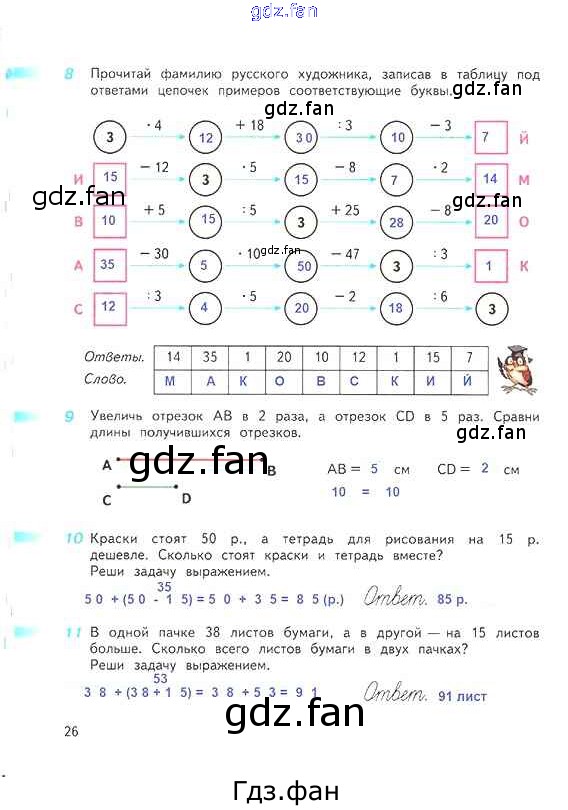 Проверка домашнего задания всегда занимает большое количество времени. На помощь приходит ГДЗ фан по Математике третьего класса. Здесь собраны популярные ответы на 26 (№ 8, 9, 10, 11) Математика 3 класс рабочая тетрадь Дорофеев Г.В.