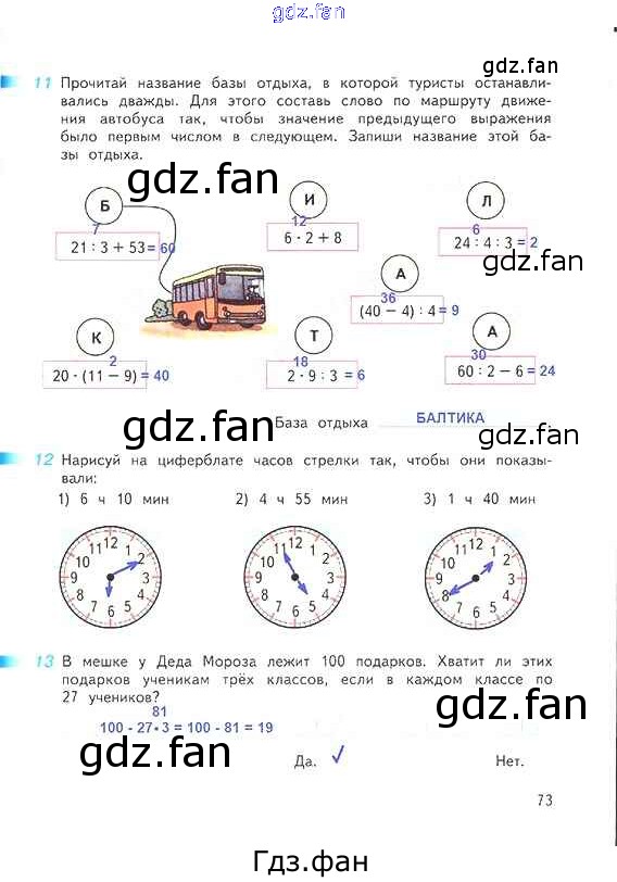 Проверка домашнего задания всегда занимает большое количество времени. На помощь приходит ГДЗ фан по Математике третьего класса. Здесь собраны популярные ответы на 73 (№ 11, 12, 13) Математика 3 класс рабочая тетрадь Дорофеев Г.В.