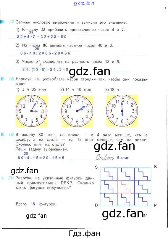Проверка домашнего задания всегда занимает большое количество времени. На помощь приходит ГДЗ фан по Математике третьего класса. Здесь собраны популярные ответы на 87 (№ 17, 18, 19, 20) Математика 3 класс рабочая тетрадь Дорофеев Г.В.