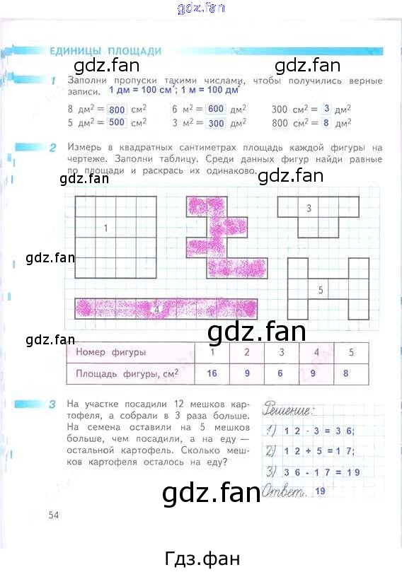 Проверка домашнего задания всегда занимает большое количество времени. На помощь приходит ГДЗ фан по Математике третьего класса. Здесь собраны популярные ответы на 54 (Единицы площади № 1, 2, 3) Математика 3 класс рабочая тетрадь Дорофеев Г.В.