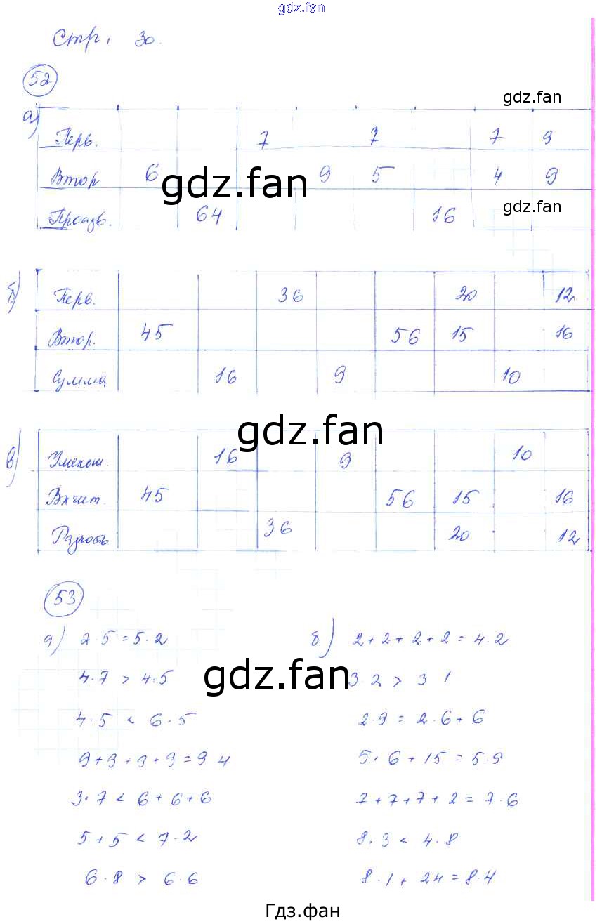 Проверка домашнего задания всегда занимает большое количество времени. На помощь приходит ГДЗ фан по Математике третьего класса. Здесь собраны популярные ответы на 30 (задание 52, 53) Математика 3 класс рабочая тетрадь Истомина Н.Б.