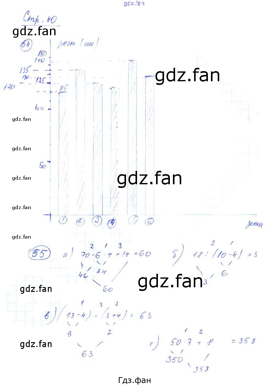 Проверка домашнего задания всегда занимает большое количество времени. На помощь приходит ГДЗ фан по Математике третьего класса. Здесь собраны популярные ответы на 40 (задание 54, 55) Математика 3 класс рабочая тетрадь Истомина Н.Б.