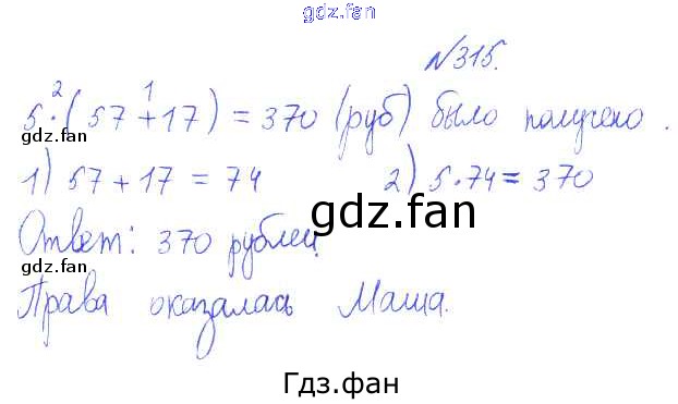 Проверка домашнего задания всегда занимает большое количество времени. На помощь приходит ГДЗ фан по Математике третьего класса. Здесь собраны популярные ответы на 315 (стр. 104) Математика 3 класс Истомина Н.Б.