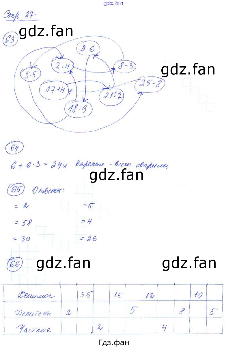 Проверка домашнего задания всегда занимает большое количество времени. На помощь приходит ГДЗ фан по Математике третьего класса. Здесь собраны популярные ответы на 27 (упражнение 63, 64, 65, 66) Математика 3 класс рабочая тетрадь Кремнева С.Ю.