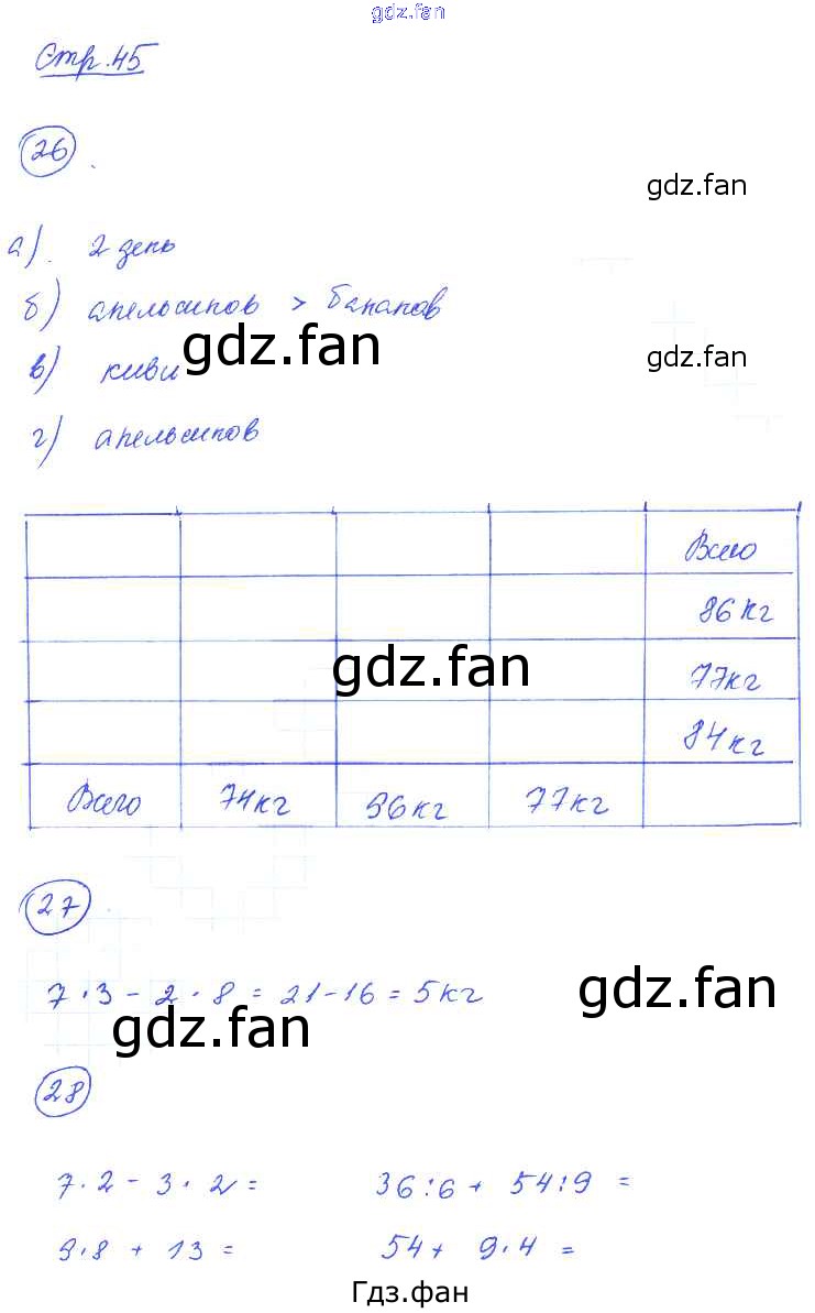 Проверка домашнего задания всегда занимает большое количество времени. На помощь приходит ГДЗ фан по Математике третьего класса. Здесь собраны популярные ответы на 45 (упражнение 26, 27, 28) Математика 3 класс рабочая тетрадь Кремнева С.Ю.