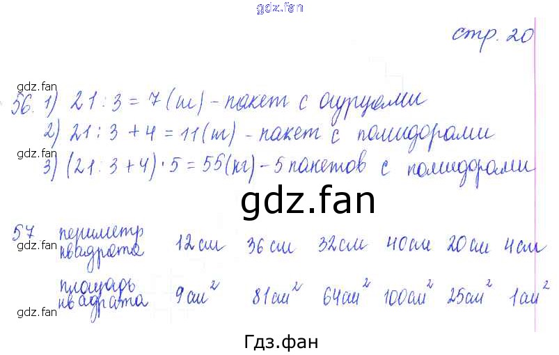 Проверка домашнего задания всегда занимает большое количество времени. На помощь приходит ГДЗ фан по Математике третьего класса. Здесь собраны популярные ответы на 20 (упражнение 56, 57) Математика 3 класс рабочая тетрадь Кремнева С.Ю.