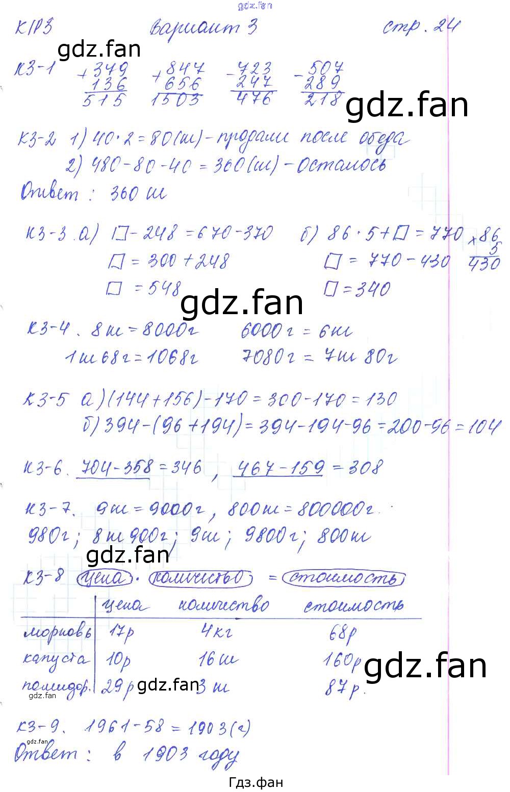 Проверка домашнего задания всегда занимает большое количество времени. На помощь приходит ГДЗ фан по Математике третьего класса. Здесь собраны популярные ответы на 3 (стр. 24-25) Математика 3 класс: контрольные и диагностические работы Нефедова М.Г.