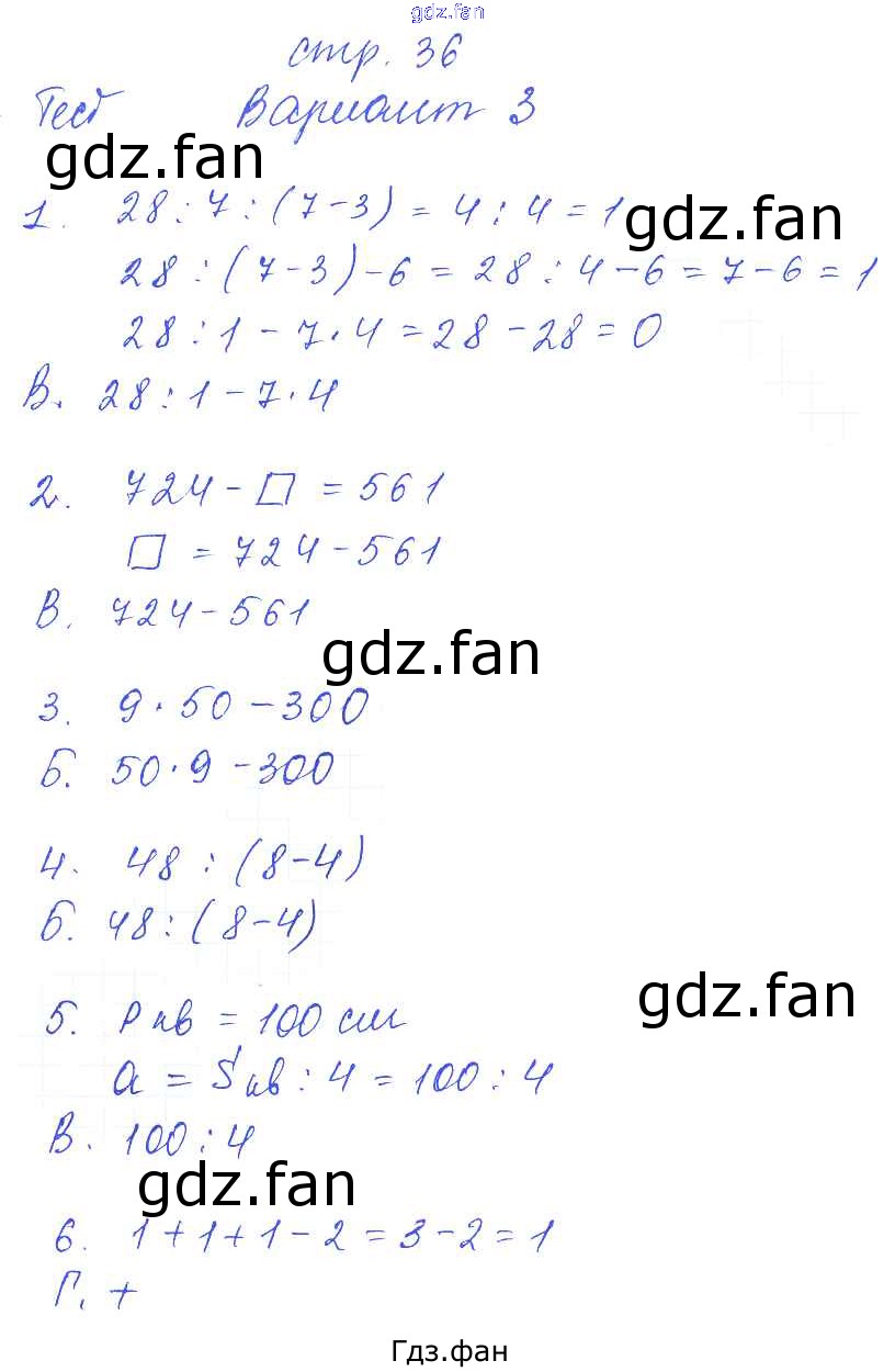Проверка домашнего задания всегда занимает большое количество времени. На помощь приходит ГДЗ фан по Математике третьего класса. Здесь собраны популярные ответы на 36 (тест "выражения и равенства". вариант 3) Математика 3 класс тесты и самостоятельные работы Нефёдова М.Г.