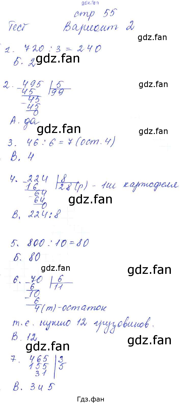 Проверка домашнего задания всегда занимает большое количество времени. На помощь приходит ГДЗ фан по Математике третьего класса. Здесь собраны популярные ответы на 55 (тест "деление на однозначное число". вариант 2) Математика 3 класс тесты и самостоятельные работы Нефёдова М.Г.