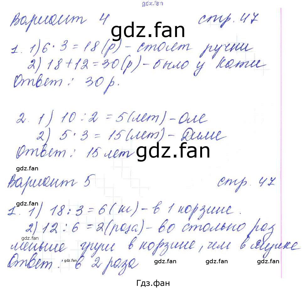 Проверка домашнего задания всегда занимает большое количество времени. На помощь приходит ГДЗ фан по Математике третьего класса. Здесь собраны популярные ответы на 47 (Вариант 4, Вариант 5) Математика 3 класс: контрольные работы Рудницкая В.Н. (к уч. Моро М.И.)