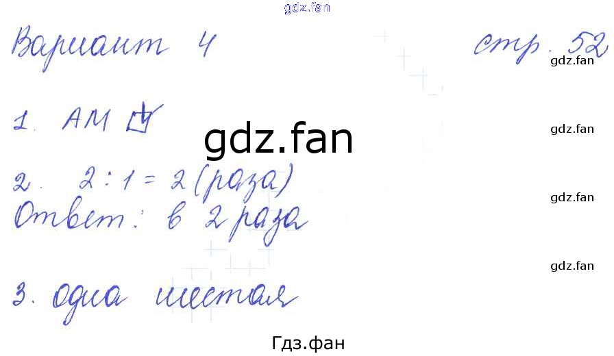 Проверка домашнего задания всегда занимает большое количество времени. На помощь приходит ГДЗ фан по Математике третьего класса. Здесь собраны популярные ответы на 52 (Вариант 4) Математика 3 класс: контрольные работы Рудницкая В.Н. (к уч. Моро М.И.)