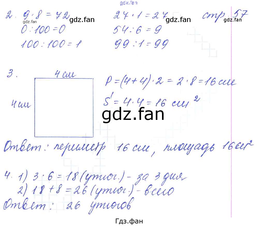 Проверка домашнего задания всегда занимает большое количество времени. На помощь приходит ГДЗ фан по Математике третьего класса. Здесь собраны популярные ответы на 57 (№ 2, 3, 4) Математика 3 класс: контрольные работы Рудницкая В.Н. (к уч. Моро М.И.)