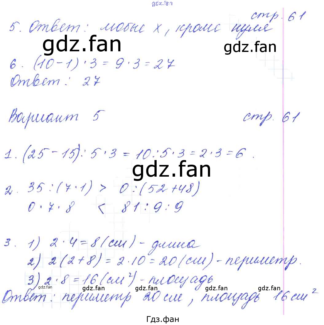 Проверка домашнего задания всегда занимает большое количество времени. На помощь приходит ГДЗ фан по Математике третьего класса. Здесь собраны популярные ответы на 61 (№ 5, 6. Вариант 5 № 1, 2, 3) Математика 3 класс: контрольные работы Рудницкая В.Н. (к уч. Моро М.И.)