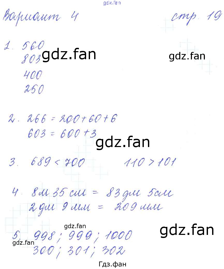 Проверка домашнего задания всегда занимает большое количество времени. На помощь приходит ГДЗ фан по Математике третьего класса. Здесь собраны популярные ответы на 19 (Вариант 4 № 1, 2, 3, 4, 5) Математика 3 класс: контрольные работы Рудницкая В.Н. (к уч. Моро М.И.)